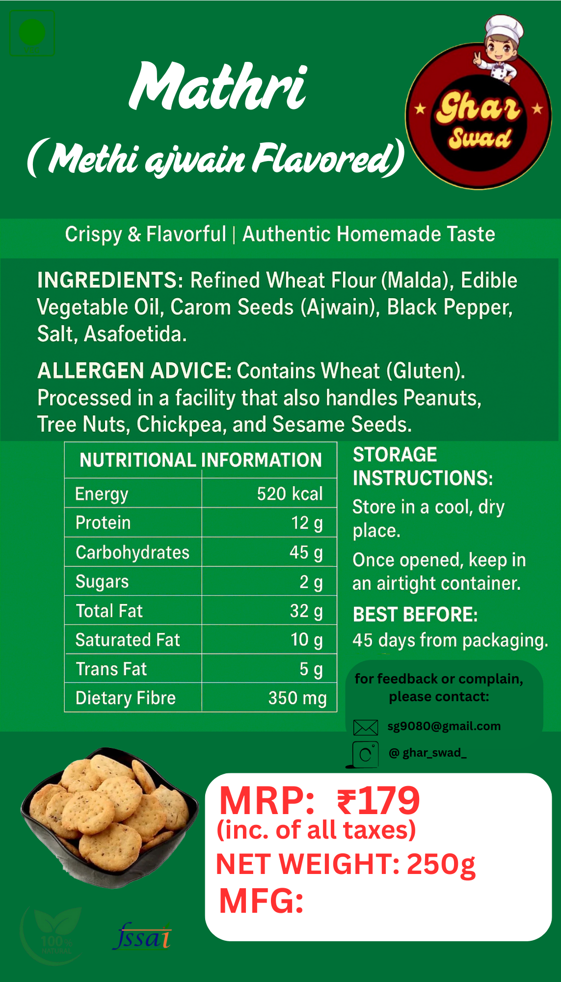 💯 Taste: Crisp, flaky & full of methi-spice goodness